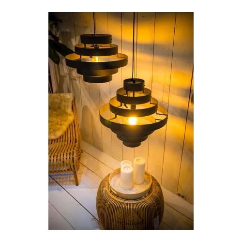 Maisons Du Monde Suspensions Suspension 4 Abat-jours En Laiton Doré Et Support En Métal Noir 94×127