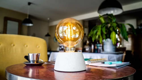 La lampe béton Dôme est un modèle avec un socle en béton coloré en forme de dôme. Son socle en béton est imposant et renforce de côté brut du béton. Ce luminaire béton, est accompagné d’une ampoule globe. Cette ampoule LED est volumineuse et s’harmonise à merveille avec le socle en forme de dôme. Cette lampe à poser béton sera parfaite comme lampe d’appoint dans votre pièce à vivre, elle apportera une touche contemporaine à votre décoration intérieure.