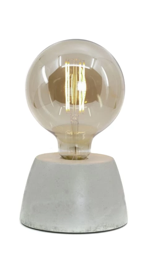 matière : Béton coloré – 13,5 cm de circonférence – 8cm de hauteur – 1,5 kg – Câble électrique blanc – 2 mètres de longueur – Avec ampoule globe à filaments