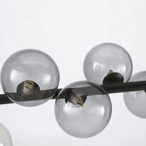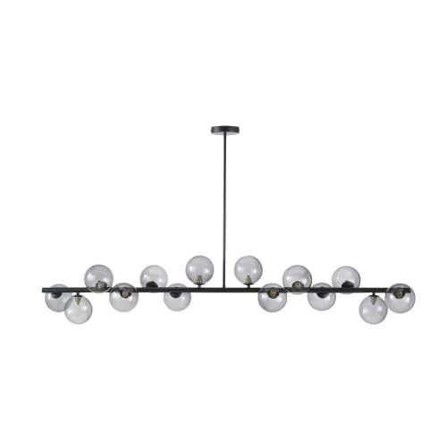Audacieuse et contemporaine, la suspension 14 globes en verre fumé et métal noir THALES transforme tous les intérieurs. Les dimensions (141 x 155 x 28) de ce luminaire moderne en font un élément fort qui occupera l’espace tout en apportant une luminosité chaleureuse.