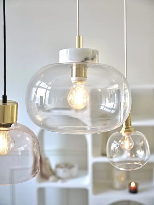 Maisons Du Monde Suspensions Suspension En Verre Rose Et Métal Doré H19
