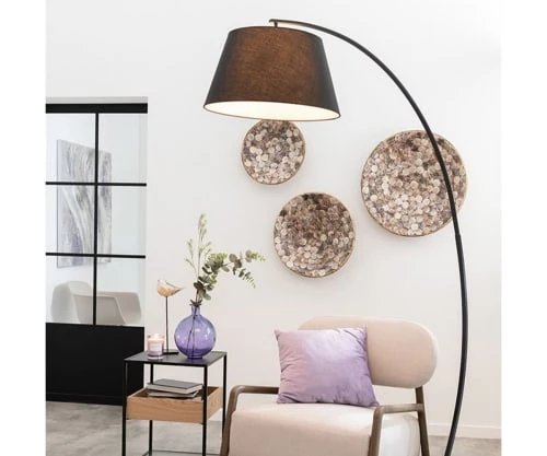 Maisons Du Monde Lampadaires Lampadaire En Bois Noir, Gris Et Beige, Abat-jour En Lin H154