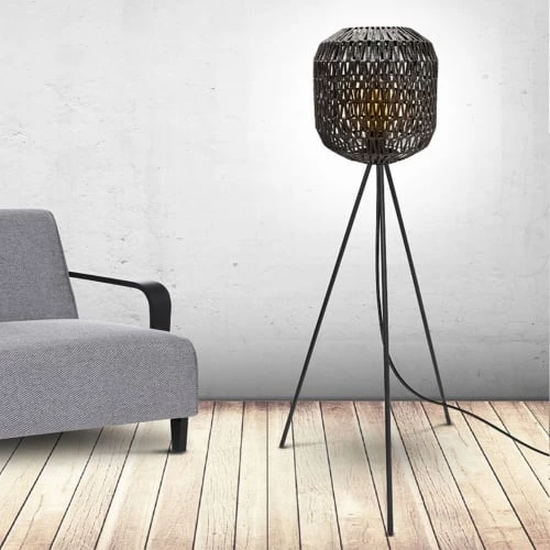 Maisons Du Monde Lampadaires Lampadaire En Bois Noir, Gris Et Beige, Abat-jour En Lin H154